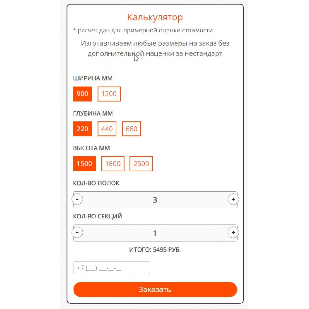 Модуль "Калькулятор стеллажей" от веб-студии Максвебсайт г. Нижняя Тура