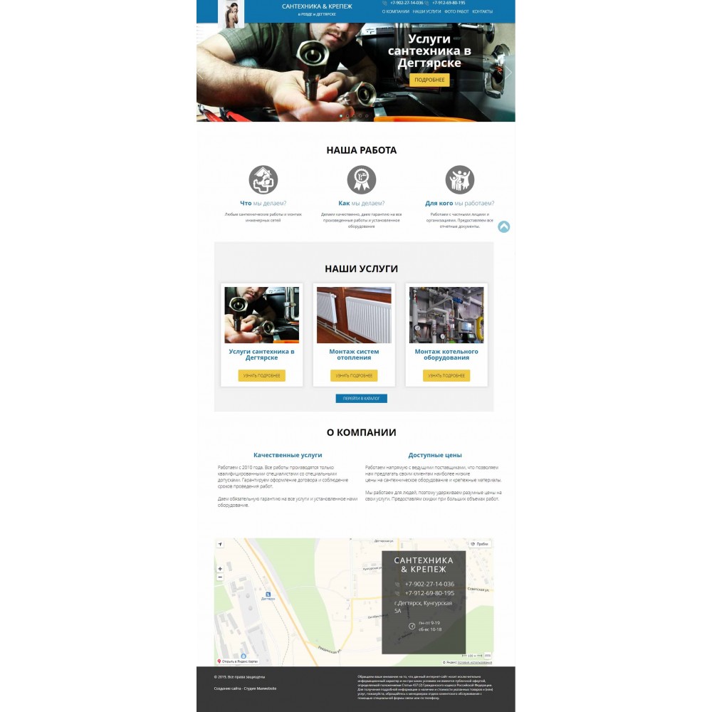 Бизнес-сайт по сантехническим услугам в г.Дегтярске от веб-студии Максвебсайт г. Нижняя Тура
