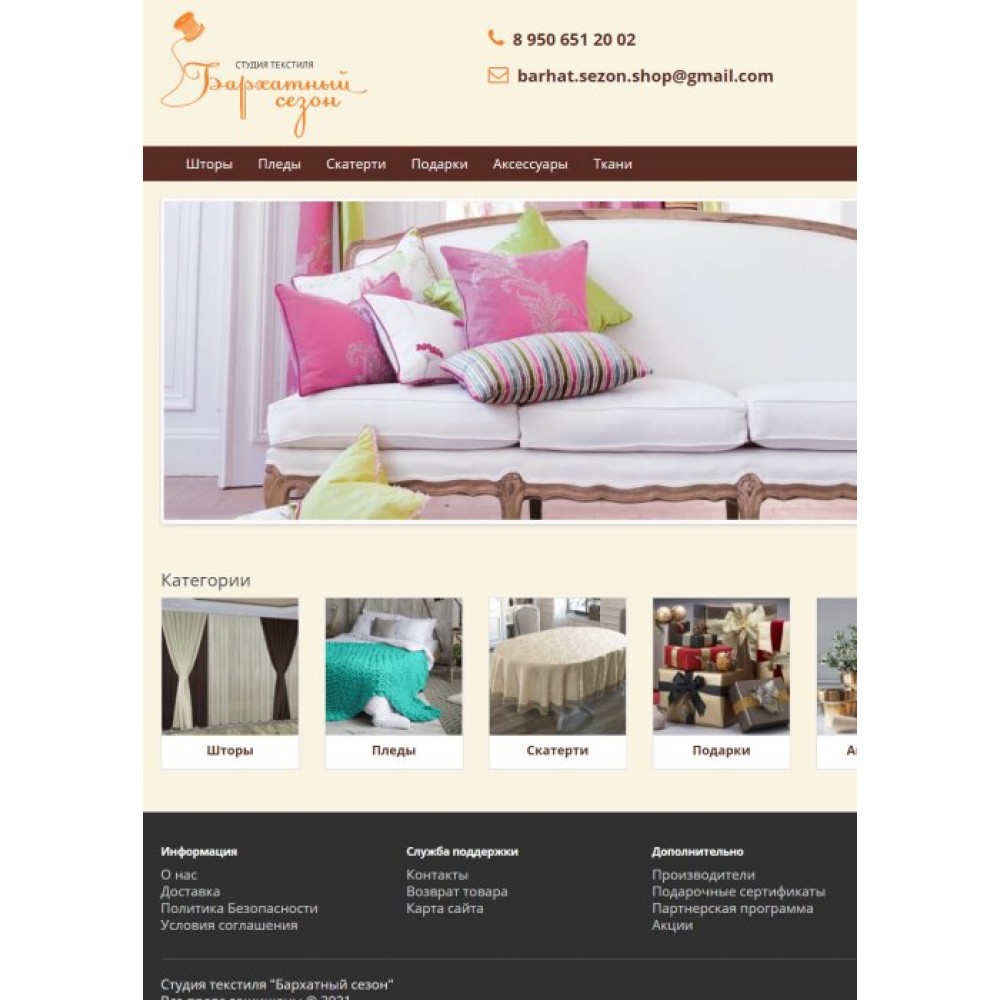 Интернет-магазин студии текстиля "Бархатный сезон" от веб-студии Максвебсайт г. Нижняя Тура