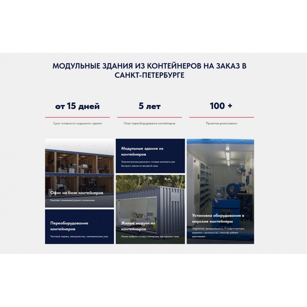 Разработка современного, информативного и функционального веб-сайта для производителя морских контейнеров, расположенного в Санкт-Петербурге.