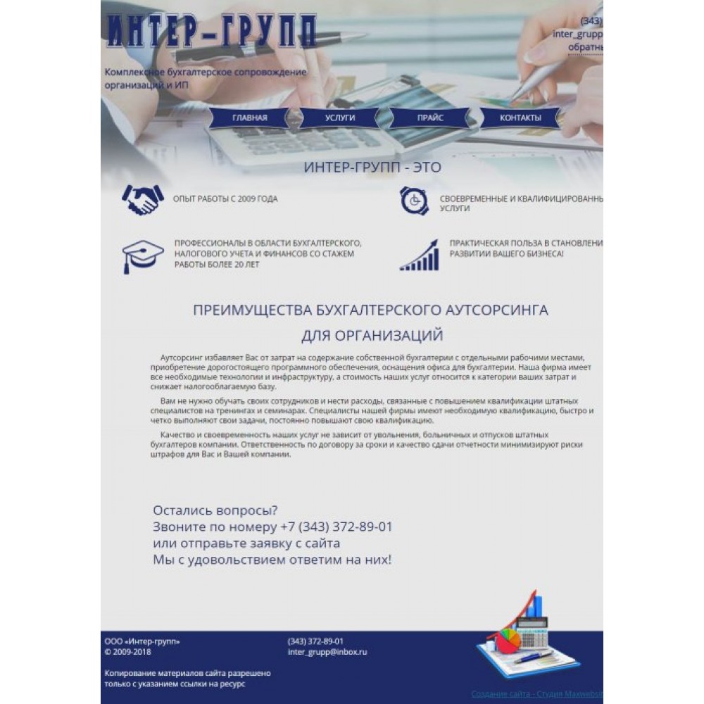 Сайт-визитка бухгалтерской компании г.Екатеринбург от веб-студии Максвебсайт г. Нижняя Тура
