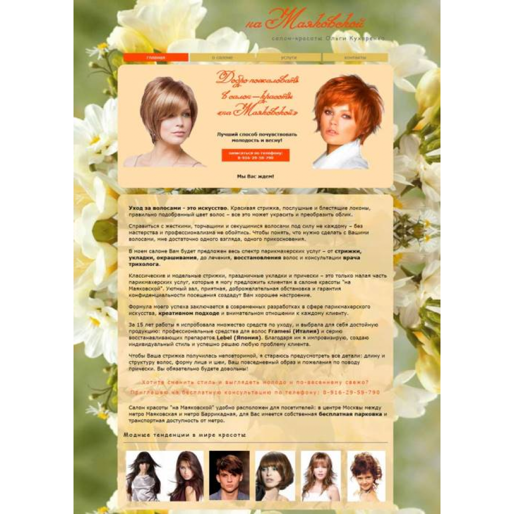 Сайт-визитка Салона красоты Ольги Кухаренко г.Москва от веб-студии Максвебсайт г. Нижняя Тура